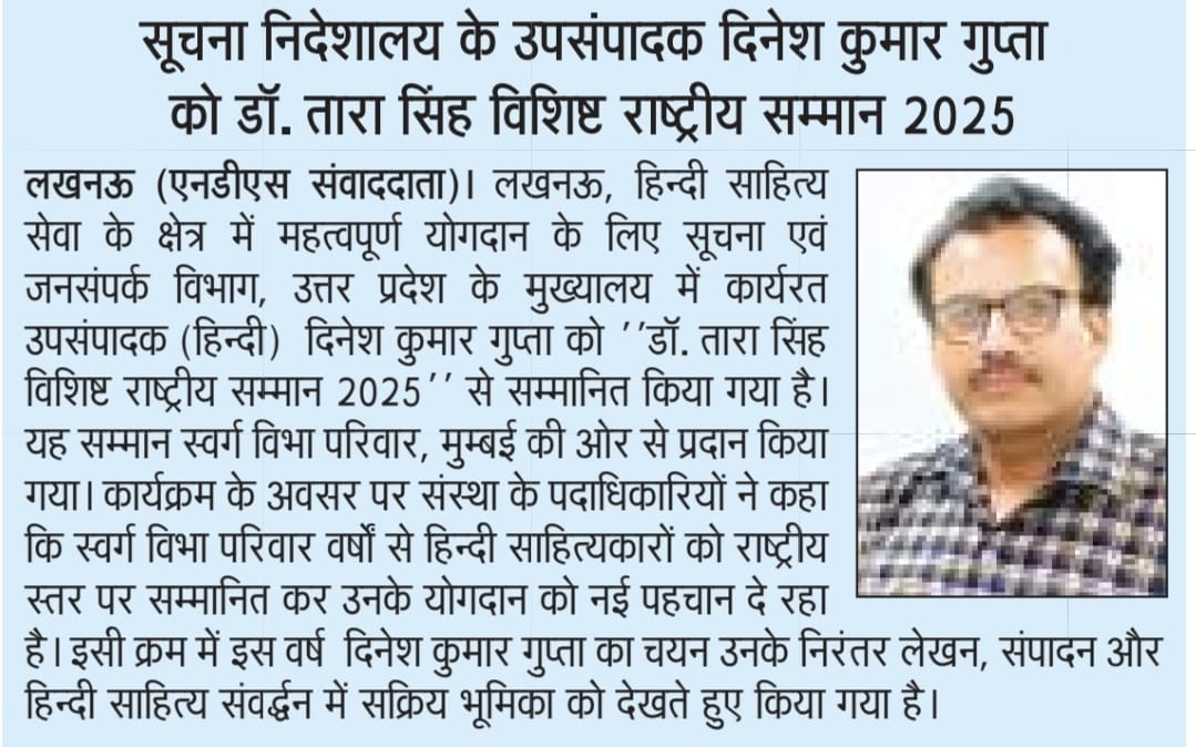 दिनेश कुमार गुप्ता को डॉ. तारा सिंह विशिष्ट राष्ट्रीय सम्मान २०२५