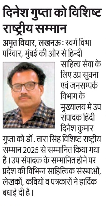 दिनेश कुमार को डॉ. तारा सिंह विशिष्ट राष्ट्रीय सम्मान